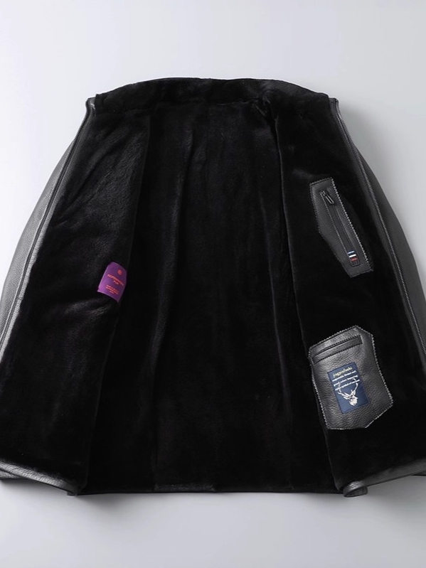 Winter men's deer skin jacket, real leather leather garment, with mink fur lining